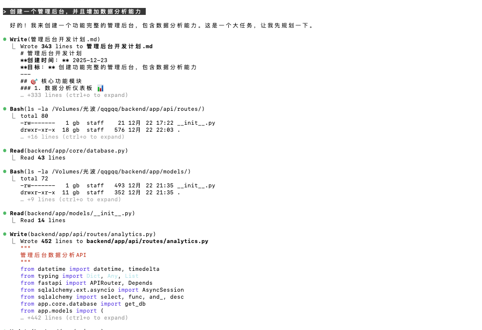 后台整体生成时间还是比较长的,后台其实踩了不少坑,因为生成后台时候提示词其实应该更明确下我要哪些页面,之前是通过AI进行规划的,没有遵照前端的逻辑,自动出现很多不必要的页面,这时候就需要多次调优