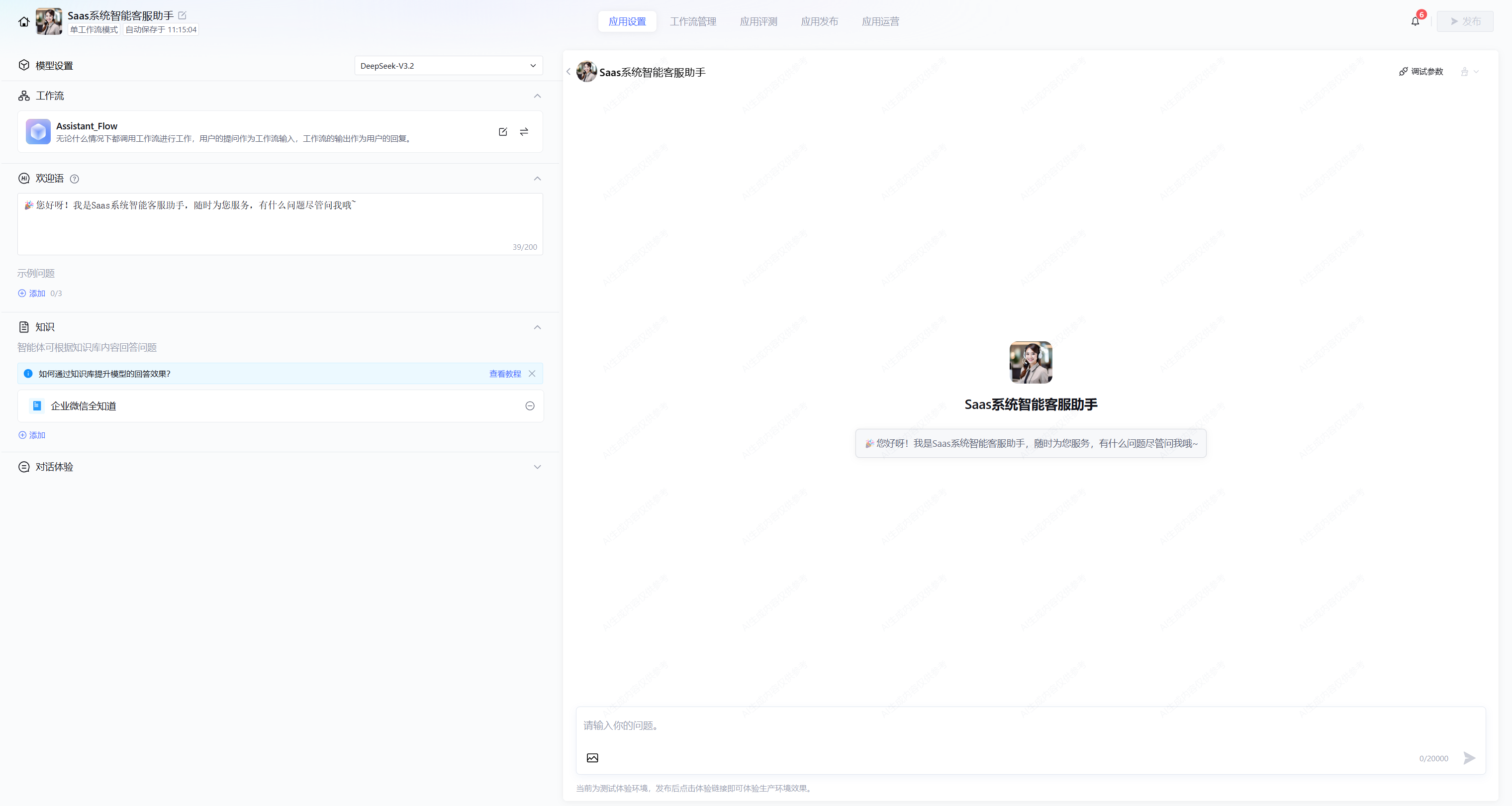 - 智能体名称:智能客服助手(填写智能体的名称)
