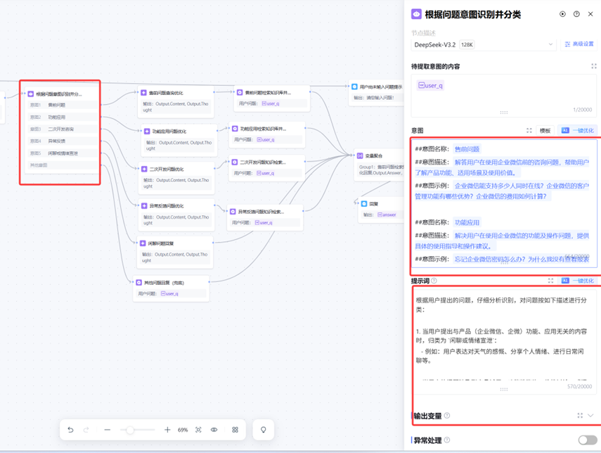 功能说明:使用大模型对用户问题进行意图分类,精准区分5种不同类型的咨询场景