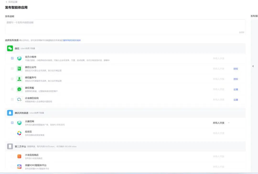 完成智能体搭建后,可以通过腾讯元器平台提供的多种发布渠道,将智能客服部署到不同的应用场景中。