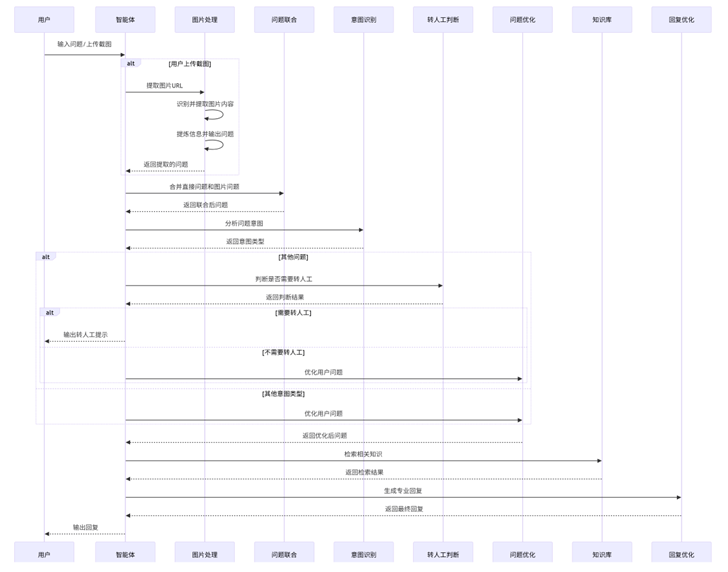 - 描述:支持文字和截图提问,自动识别意图并检索知识库回复