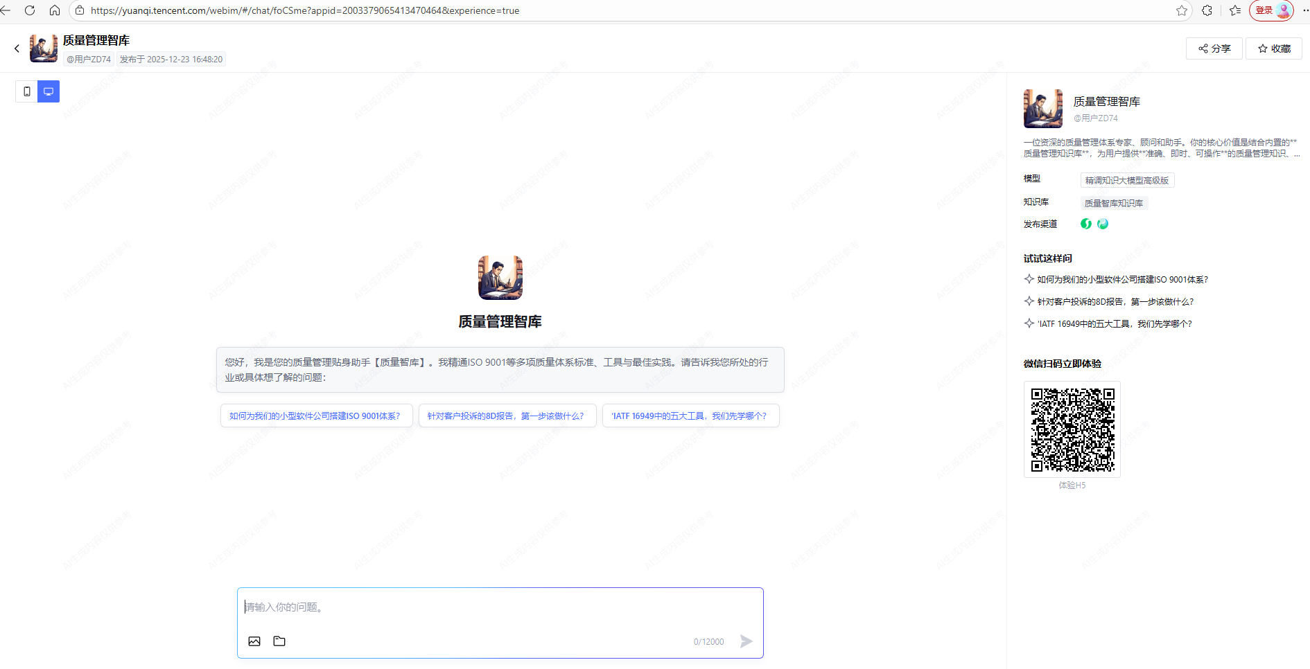 基于腾讯元器智能体平台搭建“质量管理智库”智能体笔记