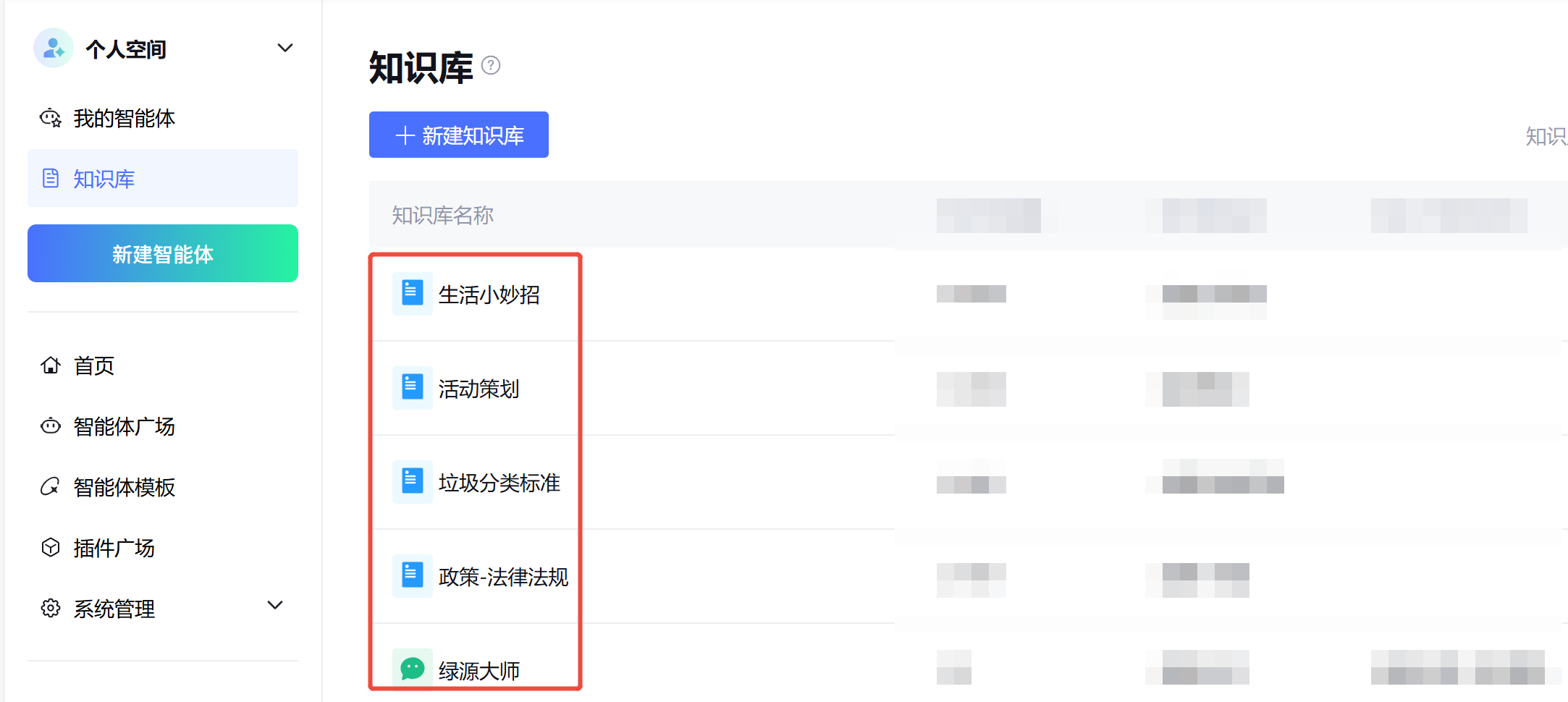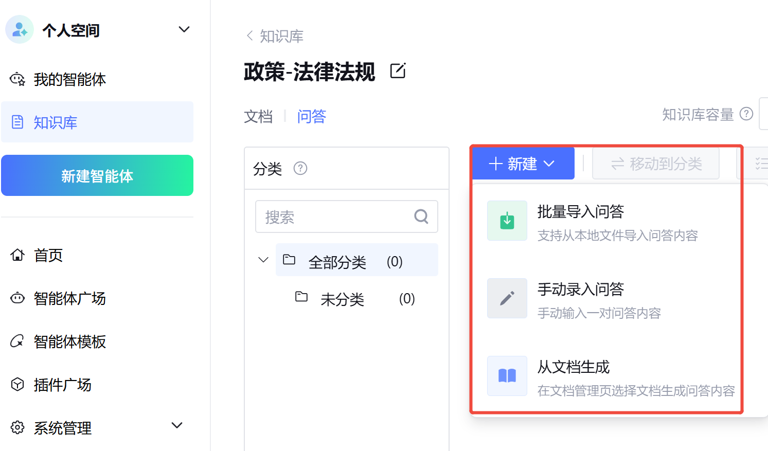 - 点击左侧菜单「知识库」