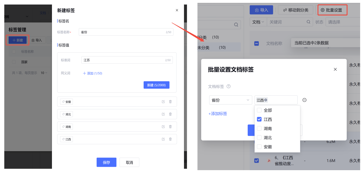 当知识库文档很多时,标签可以帮助AI精准定位,在这之前可以对知识库设置标签分类精细化管理。