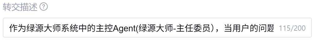 转交描述是告诉系统“什么时候该由这个主智能体出面处理”。在「转交描述」框中填写: