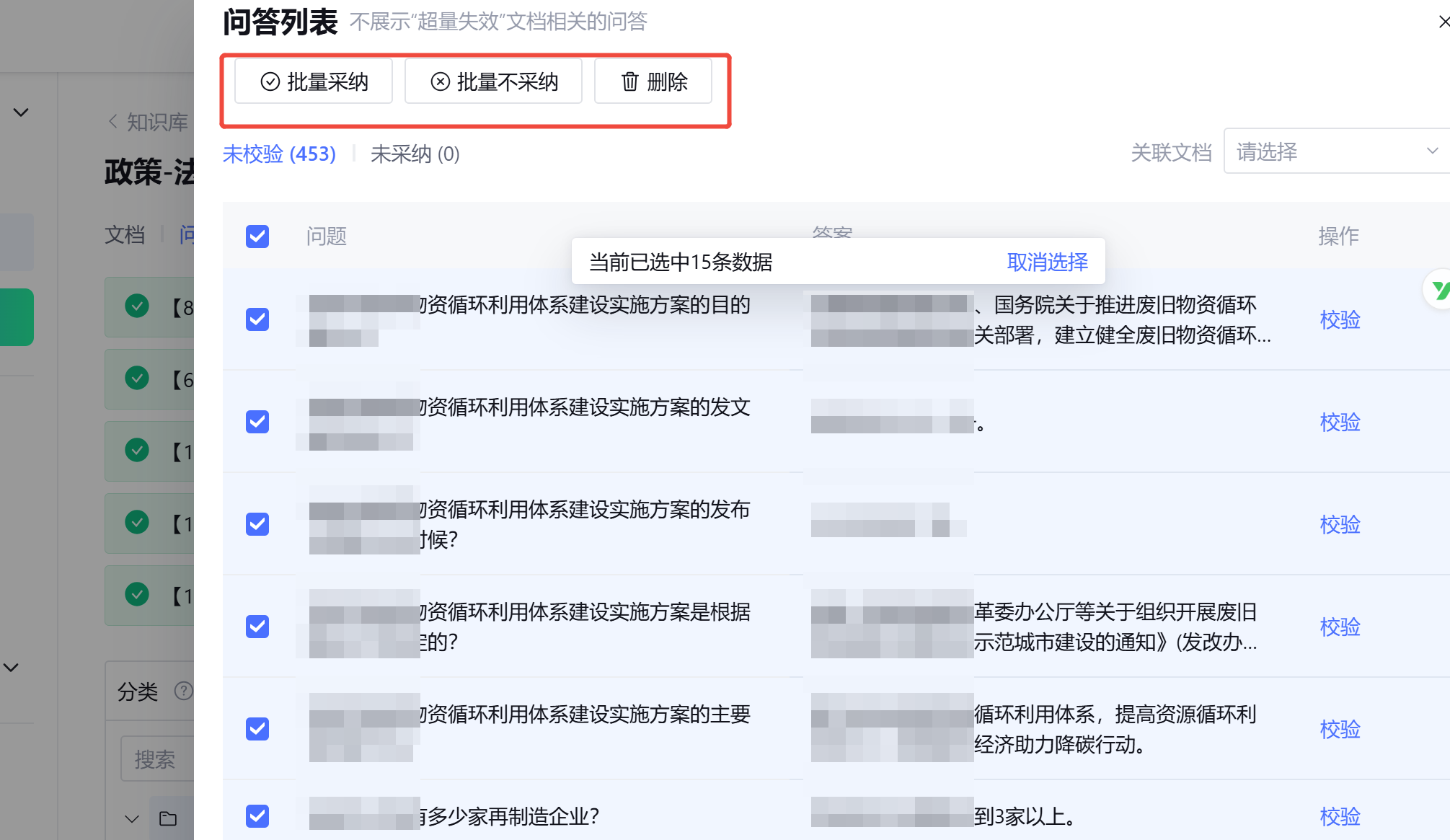而针对系统自动提炼的Q-A问答,可根据实际情况进行采纳与否或者删除。