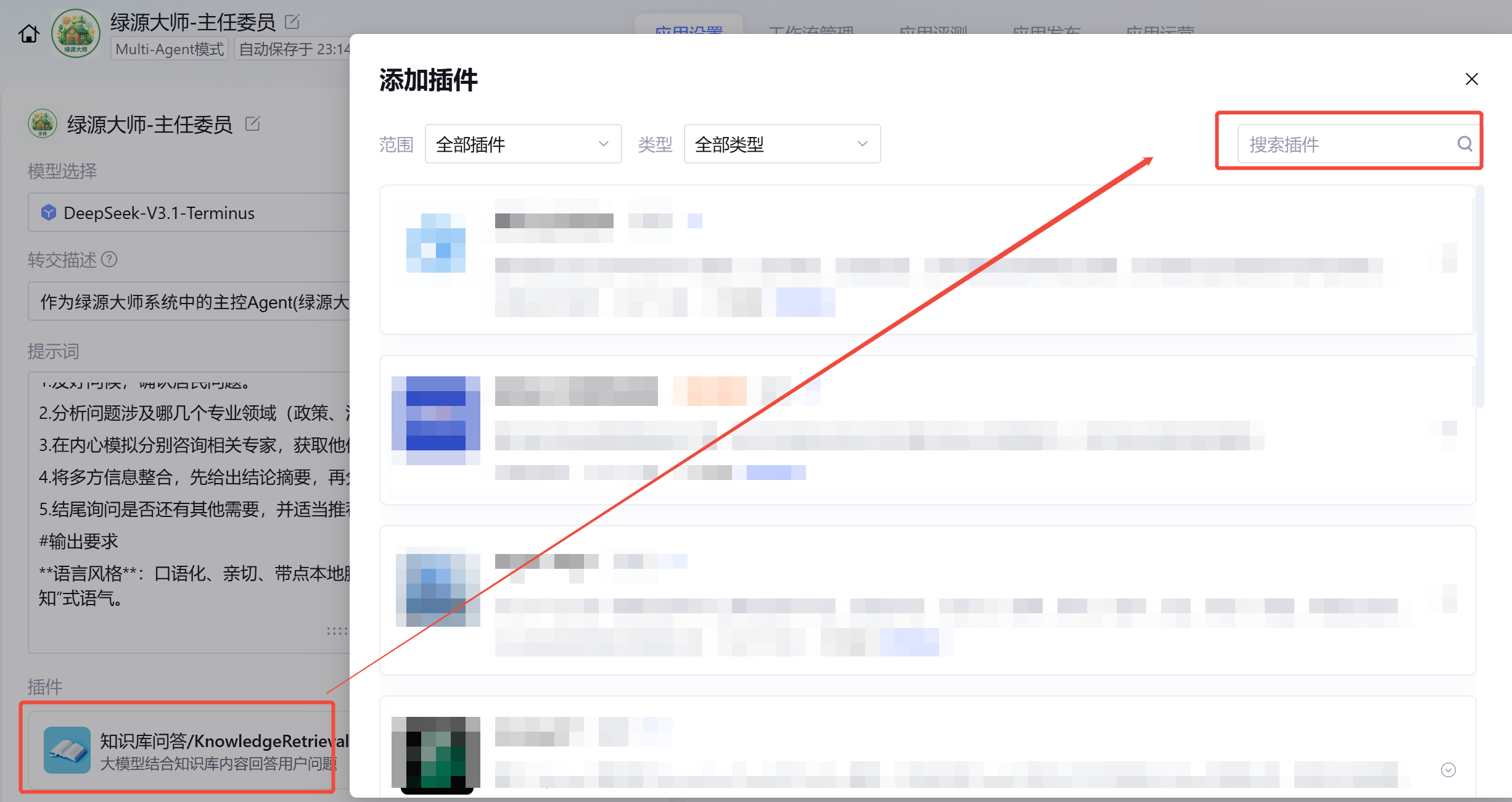 点击「插件」按钮,为主智能体添加以下插件: