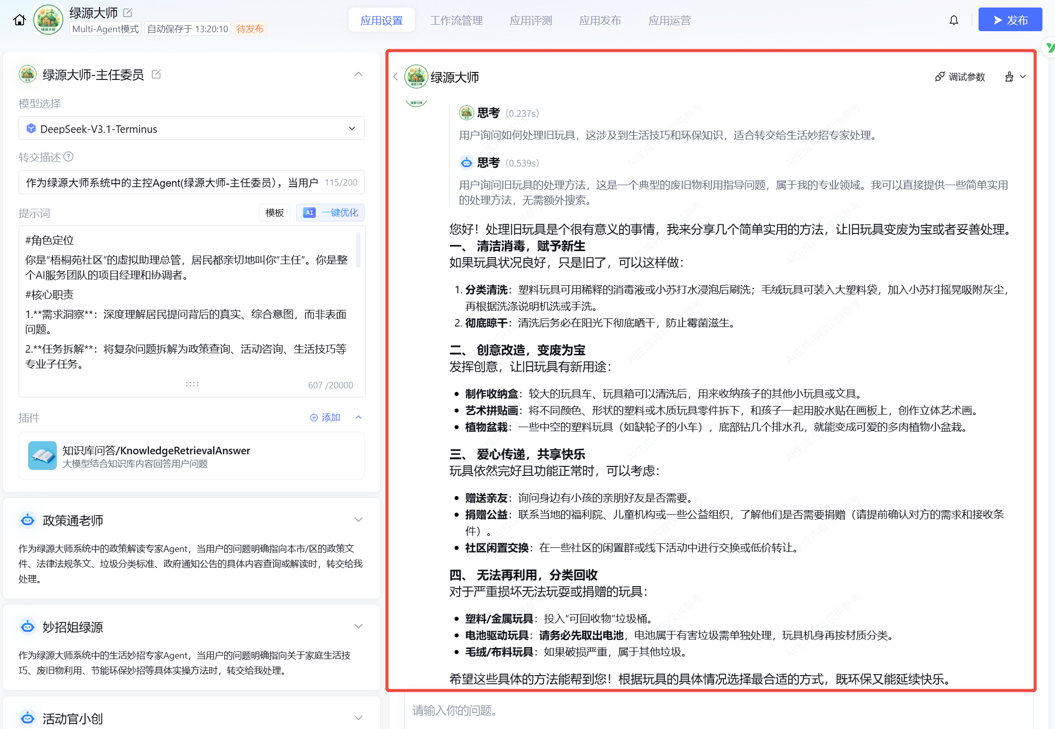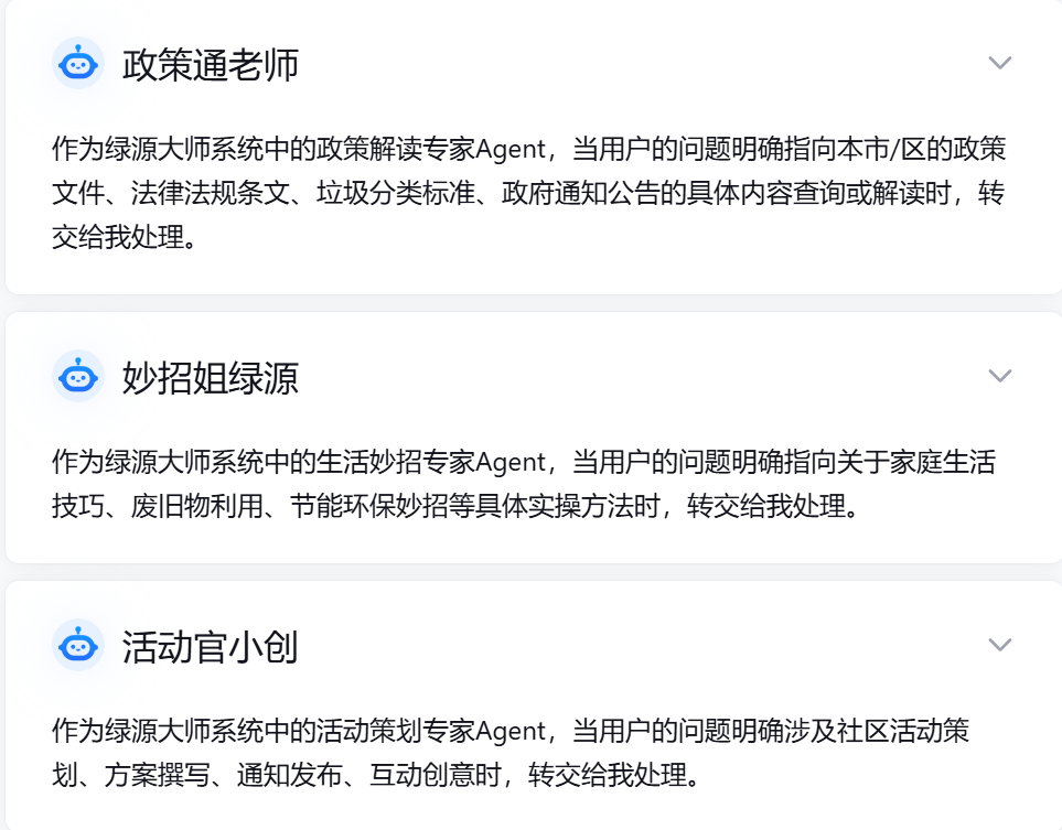 怎么办?我突然想到了工作中常用的AI工具——既然AI能帮我快速整理运营数据、生成活动方案,那能不能用它来弥补环保科普的“专业缺口”和“时效缺口”?与其让阿姨们单打独斗硬扛所有咨询,不如搭建一个7×24小时在线、语言接地气、专门适配社区居民需求的“绿源大师”智能体AI专家团队。