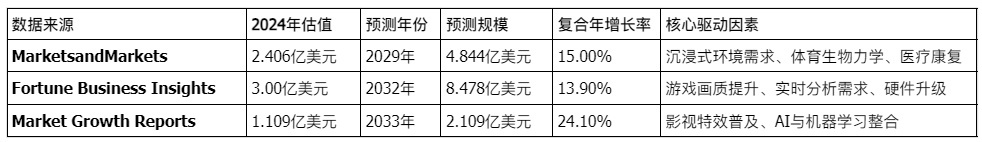 表 2-1:全球3D动捕市场规模预测对比