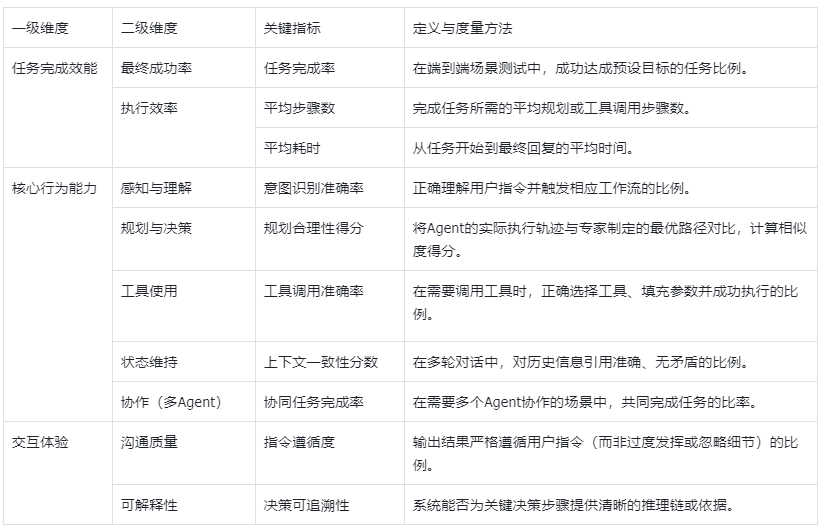 评测指标矩阵:基座模型与智能体的分与合