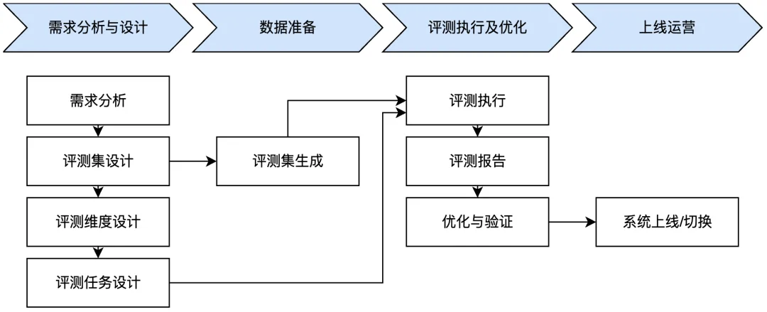 - 上线运营:基于评测结果做出上线决策,并转入持续监控。