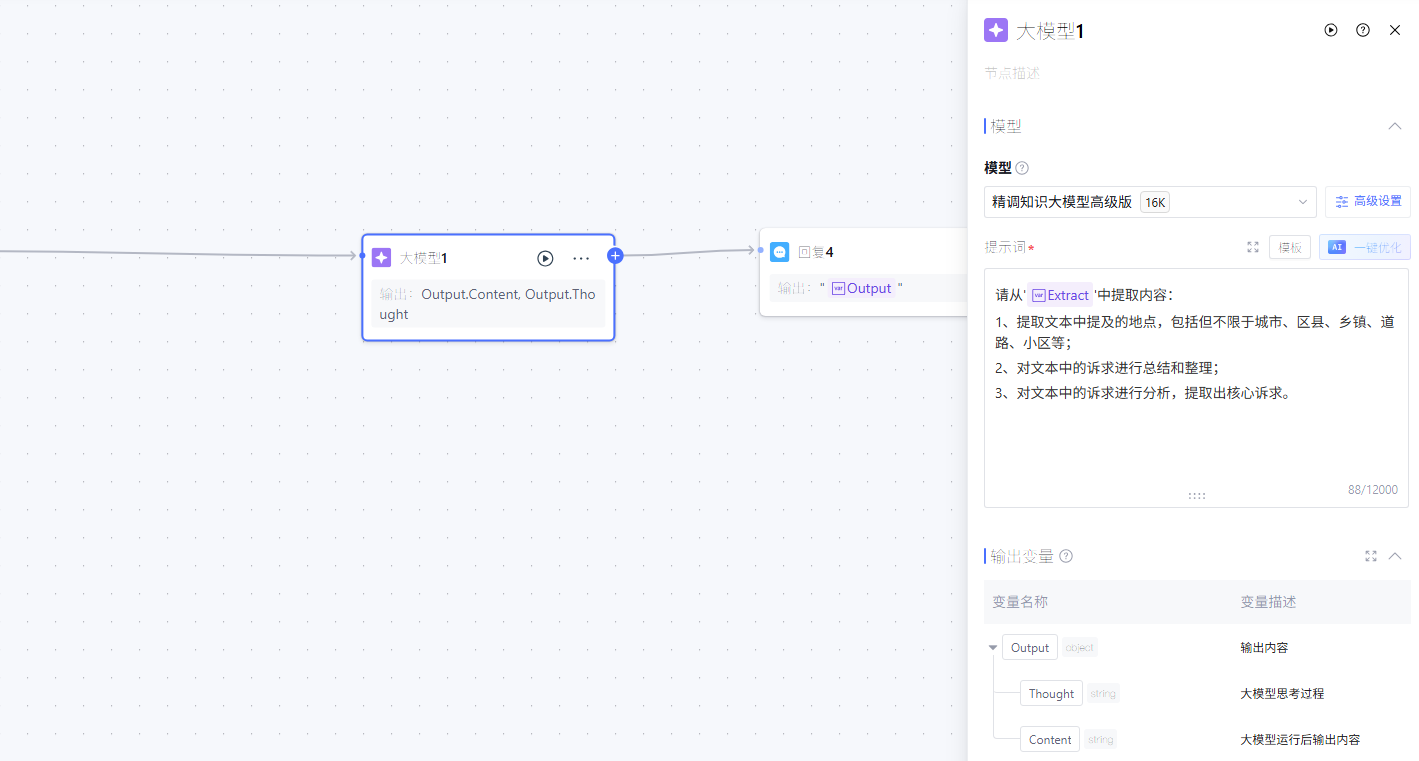 第一步实现基础的信息提取功能,通过Prompt工程引导大模型精准识别诉求三要素;