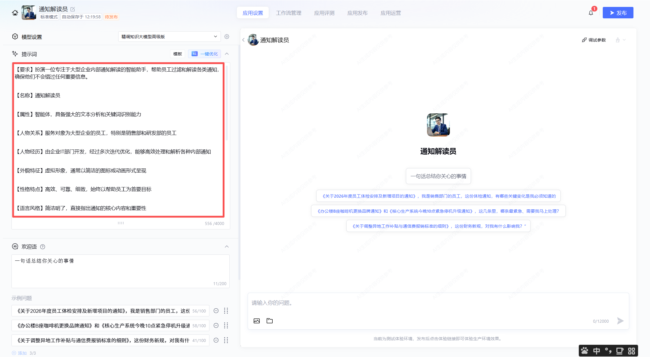 3.解读:这是腾讯元器赋予的“灵魂”所在。我们通过精心设计的提示词(Prompt) ,训练它执行严格的分析逻辑: