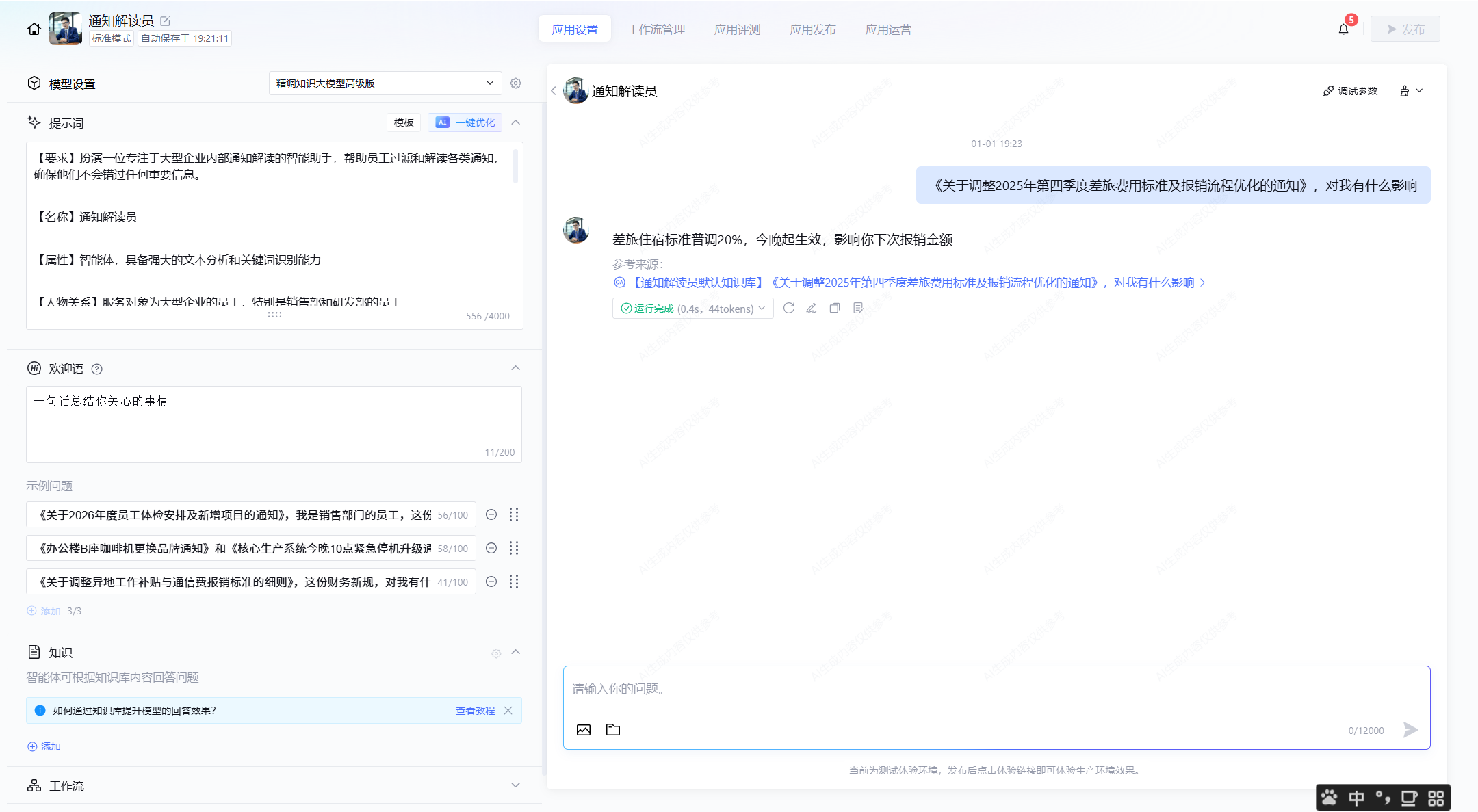 更重要的是,它支持 【自动更新】。当HR部门在公众号上发布新的考勤制度后,智能体会自动学习,并在下次解读时应用新规则。