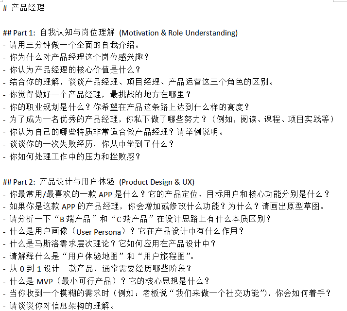 我搜集整理了“产品经理”、“技术研发”、“市场营销”等热门岗位的数百道高频面试题,并将其细分为“自我认知”、“专业技能”、“情景应对”等模块。