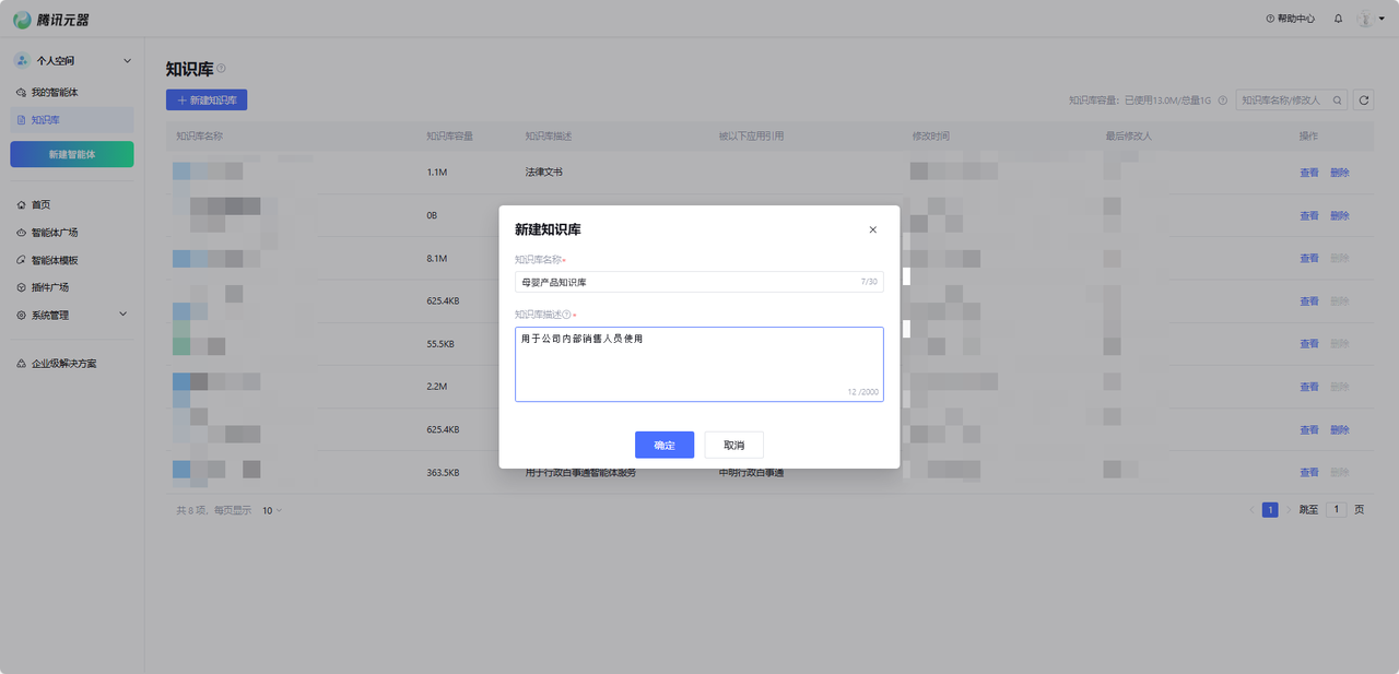 1)新建知识库,存放资料