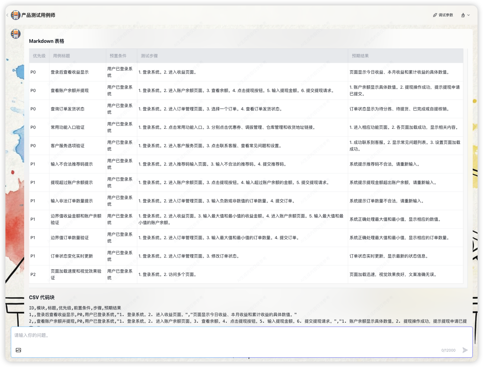 价值:按照 P0/P1/P2 划分优先级,生成的步骤是“1.点击、2.检查”,开发看一眼就知道怎么改代码。