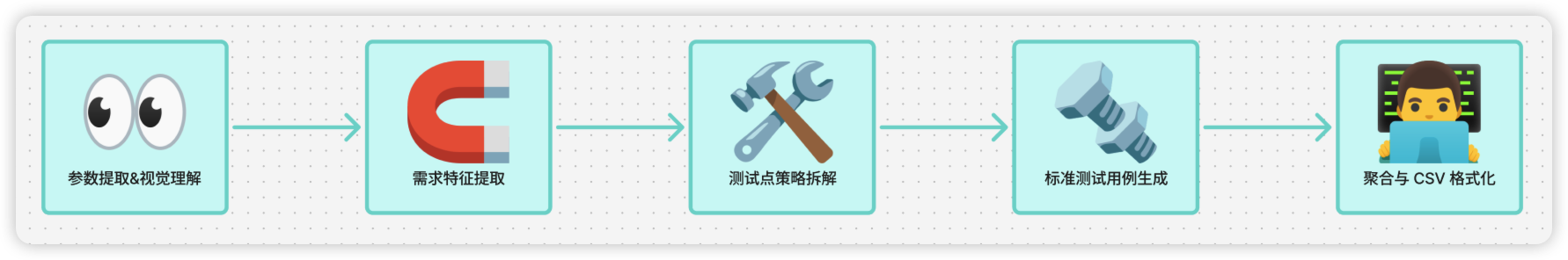 这套工作流(如下图)通过需求提取、策略拆解、用例生成、格式规范四个节点,把“人脑排雷”变成了“工业化流水线”。
