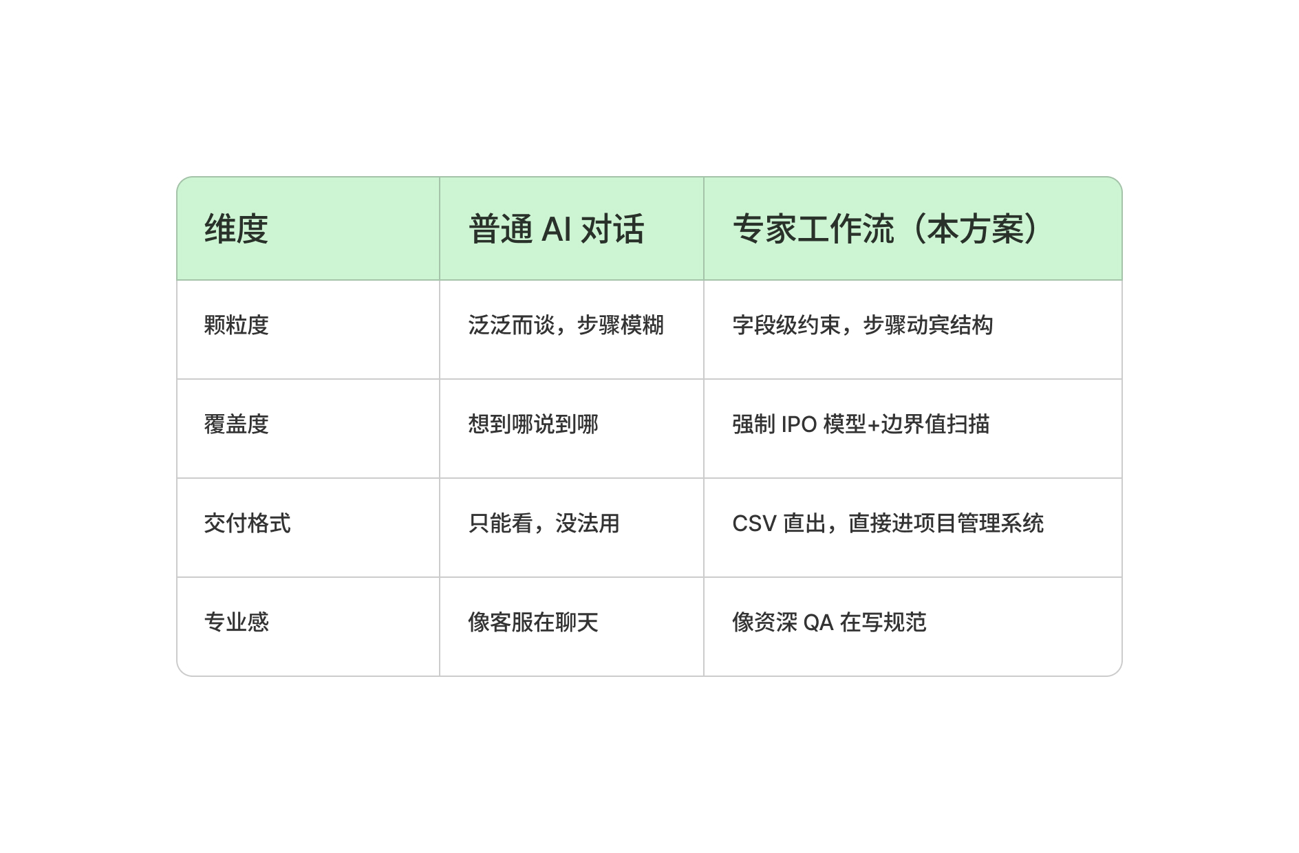 - 从“拍脑袋”到“有凭有据”:评审会上,当开发质疑逻辑不闭环时,你直接甩出一份覆盖了 50 个场景的测试矩阵,这是最强的专业背书。