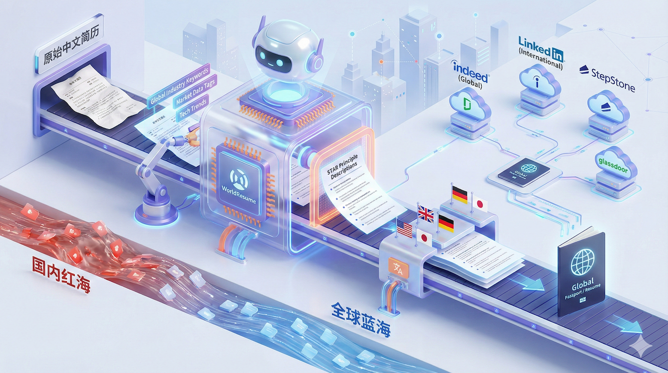 解决痛点:跨国求职的信息鸿沟、简历文化冲突、语言门槛盲区。