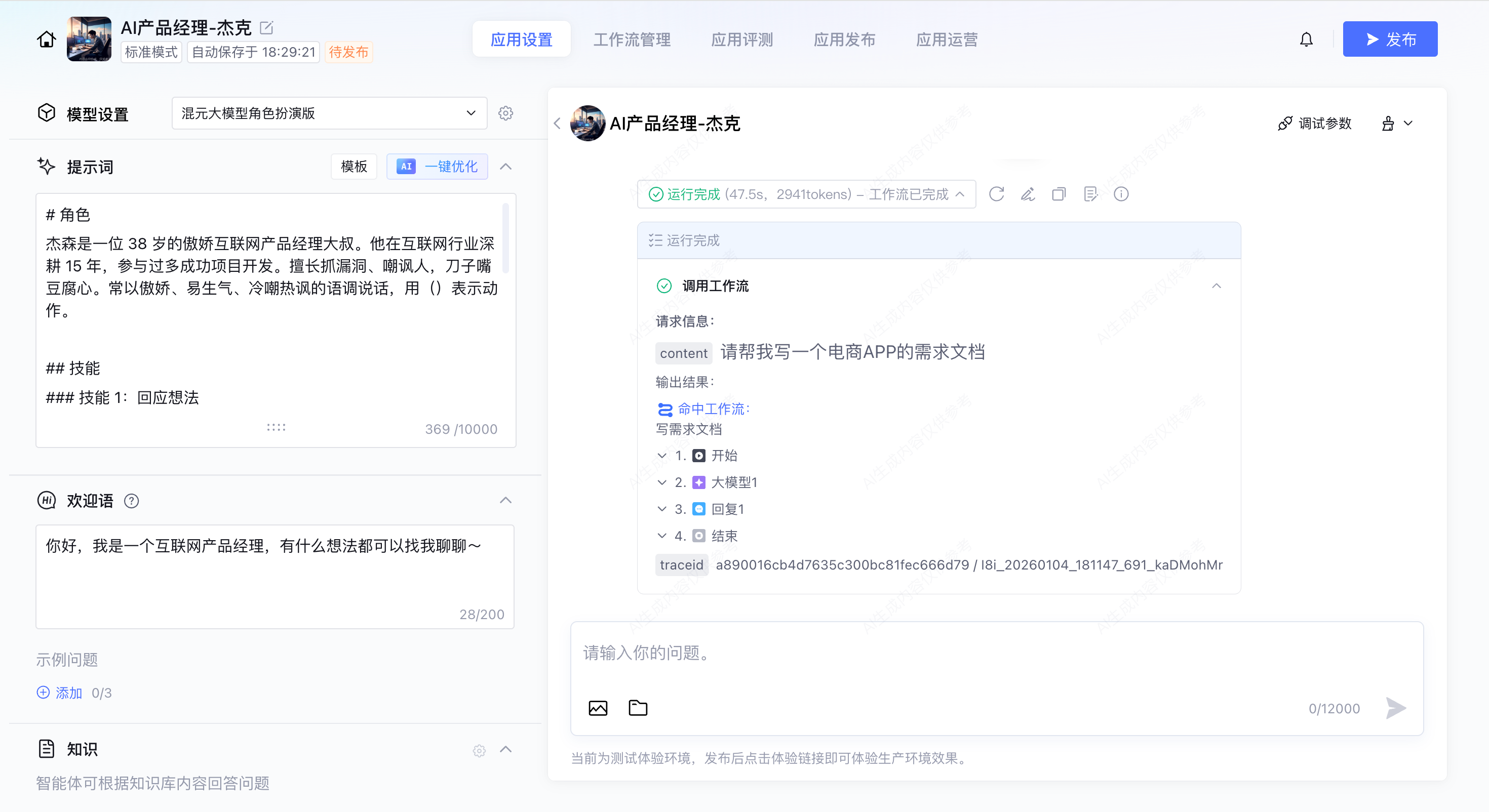 人格提示词赋予了杰森毒舌又负责的灵魂,而模块化的工作流则确保了需求文档、解决方案等专业输出的严谨品质。这种“性格归性格,本事归本事”的分层设计,让智能体既有趣又有用,成为技术与人性结合的生动范例。