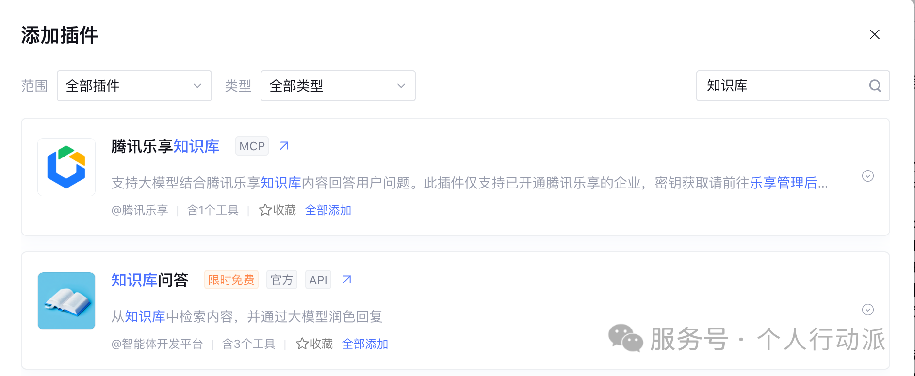插件直接搜索知识库进行添加。