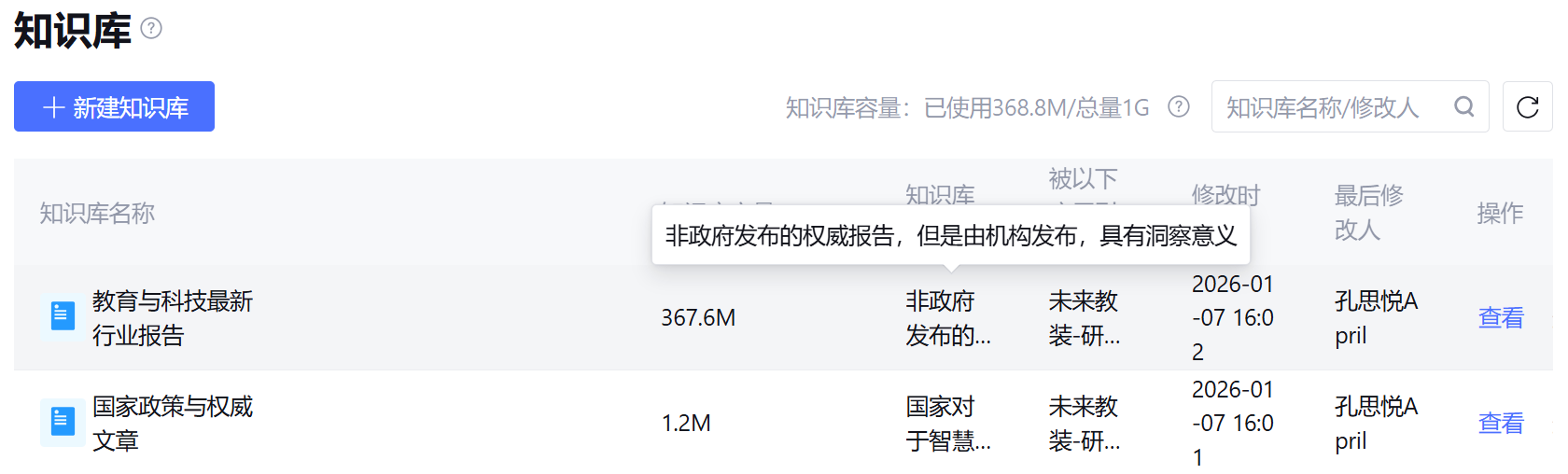图:知识库界面