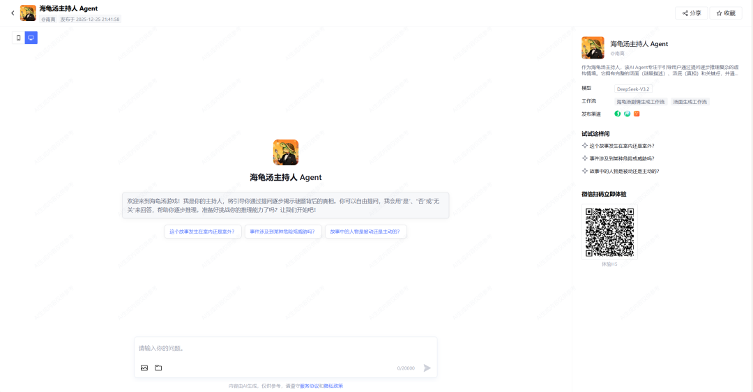 点击下方链接体验海龟汤主持人 Agent(已上架到小米应用商店):