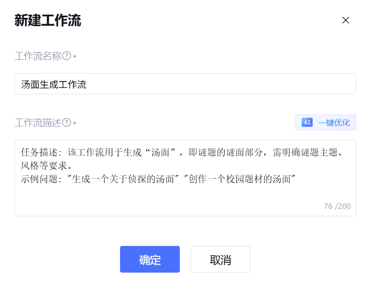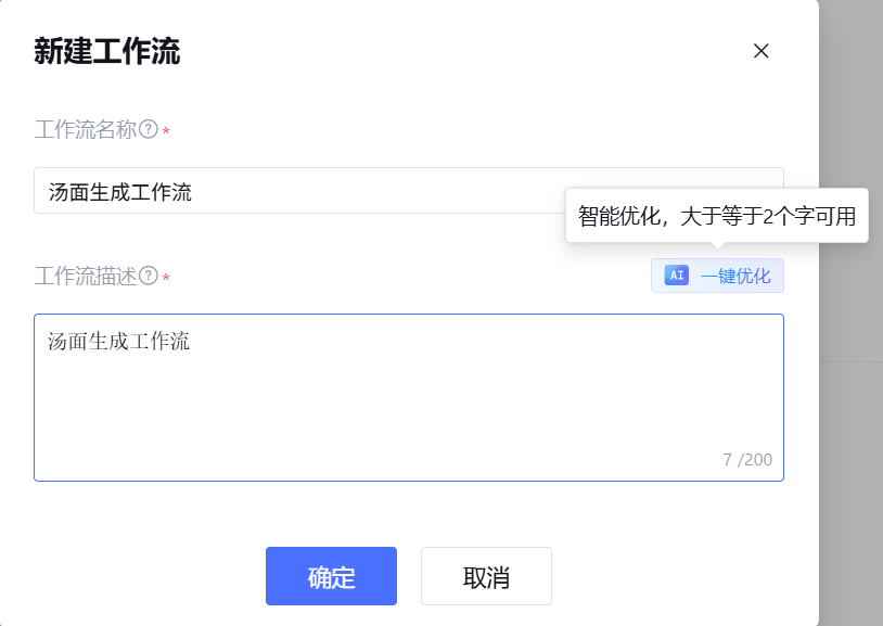 我们输入工作流,这里有趣的是可以点击一键优化。