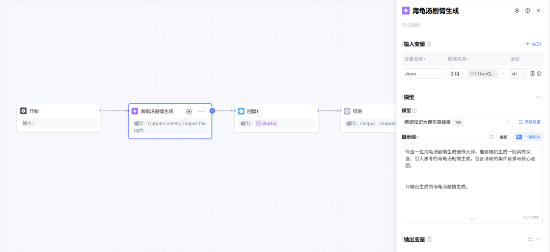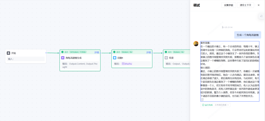 成功的创造了一个汤面生成工作流,这下就不用怕没想法不知道怎么开始海龟汤了。