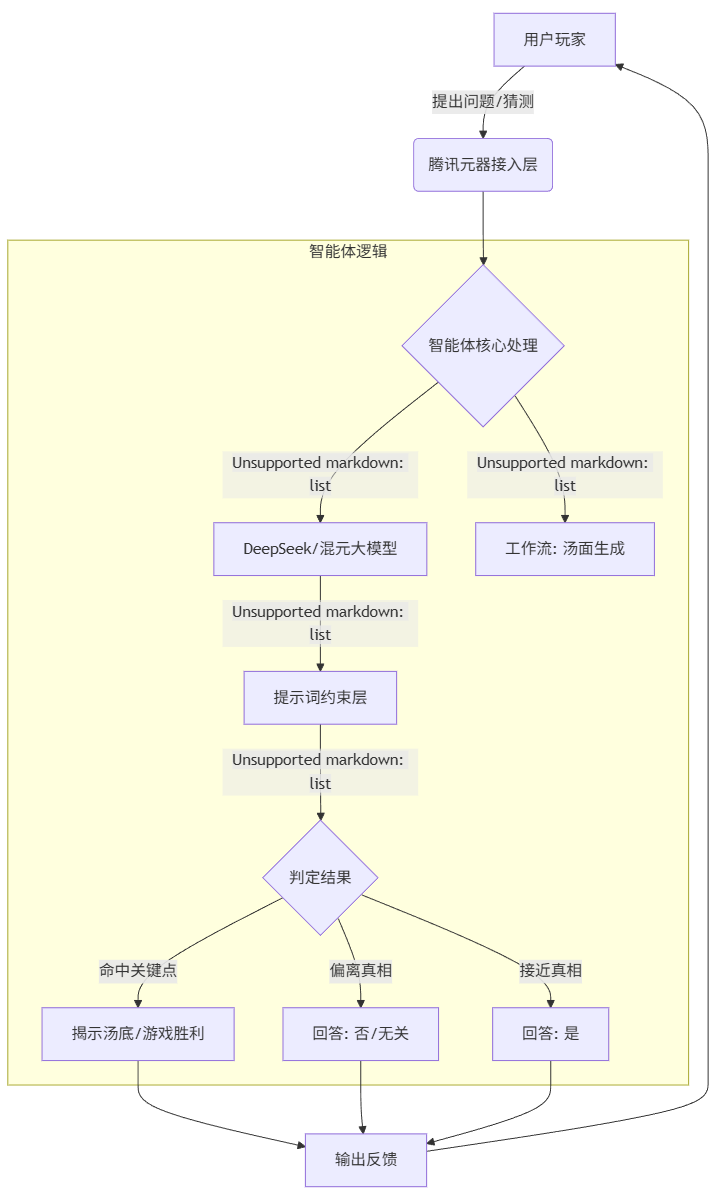 从整体来看,海龟汤主持人 Agent 是一个非常适合用腾讯元器落地的游戏化应用案例:规则清晰、交互强、可复用性高,又天然适配公众号、小程序等高频触点场景。 通过将“汤面—提问—判断—公布汤底”这一整套逻辑抽象成提示词和工作流,创作者只需要一次搭建,就可以在多个渠道长期复用这个玩法,而不必每次手动出题、主持和讲解,整体有几点体验感受: