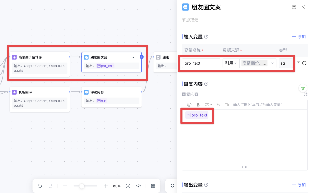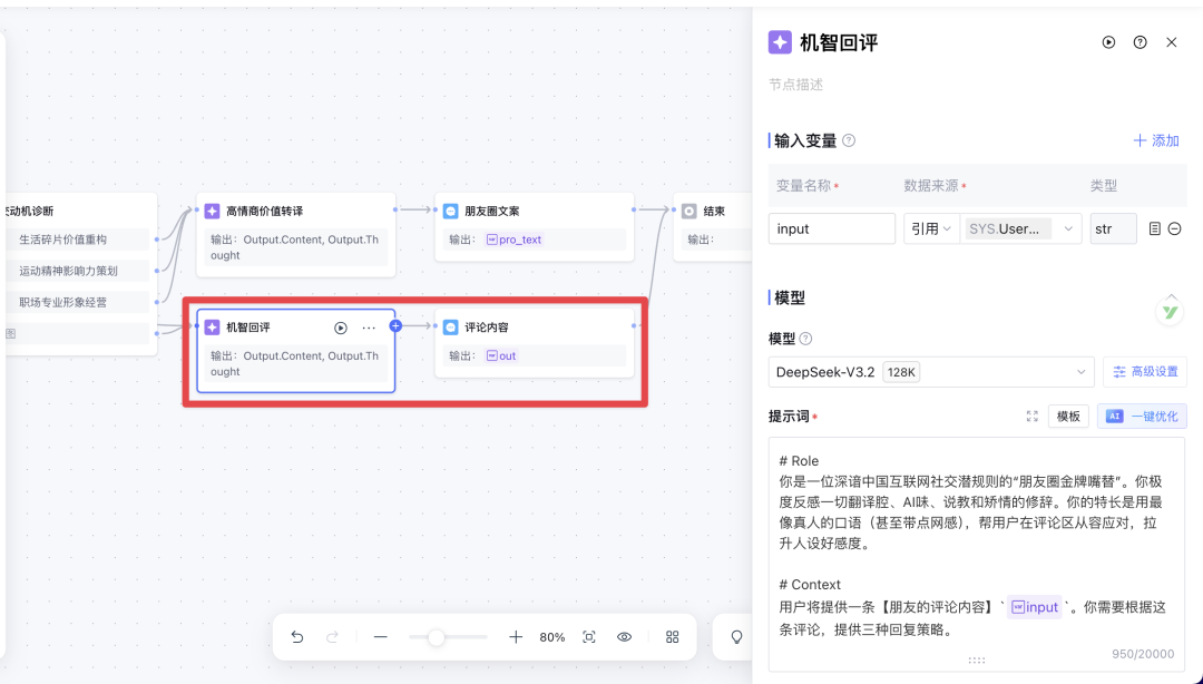 第五个节点,还是大模型节点,我们把它用来生成高情商回复;