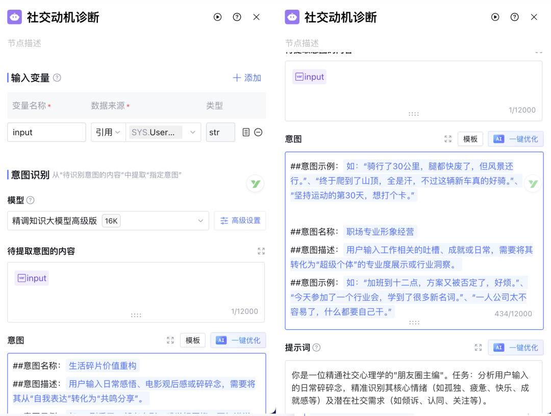 智能体不会直接润色,而是通过工作流中的“意图识别”节点进行三级切片: