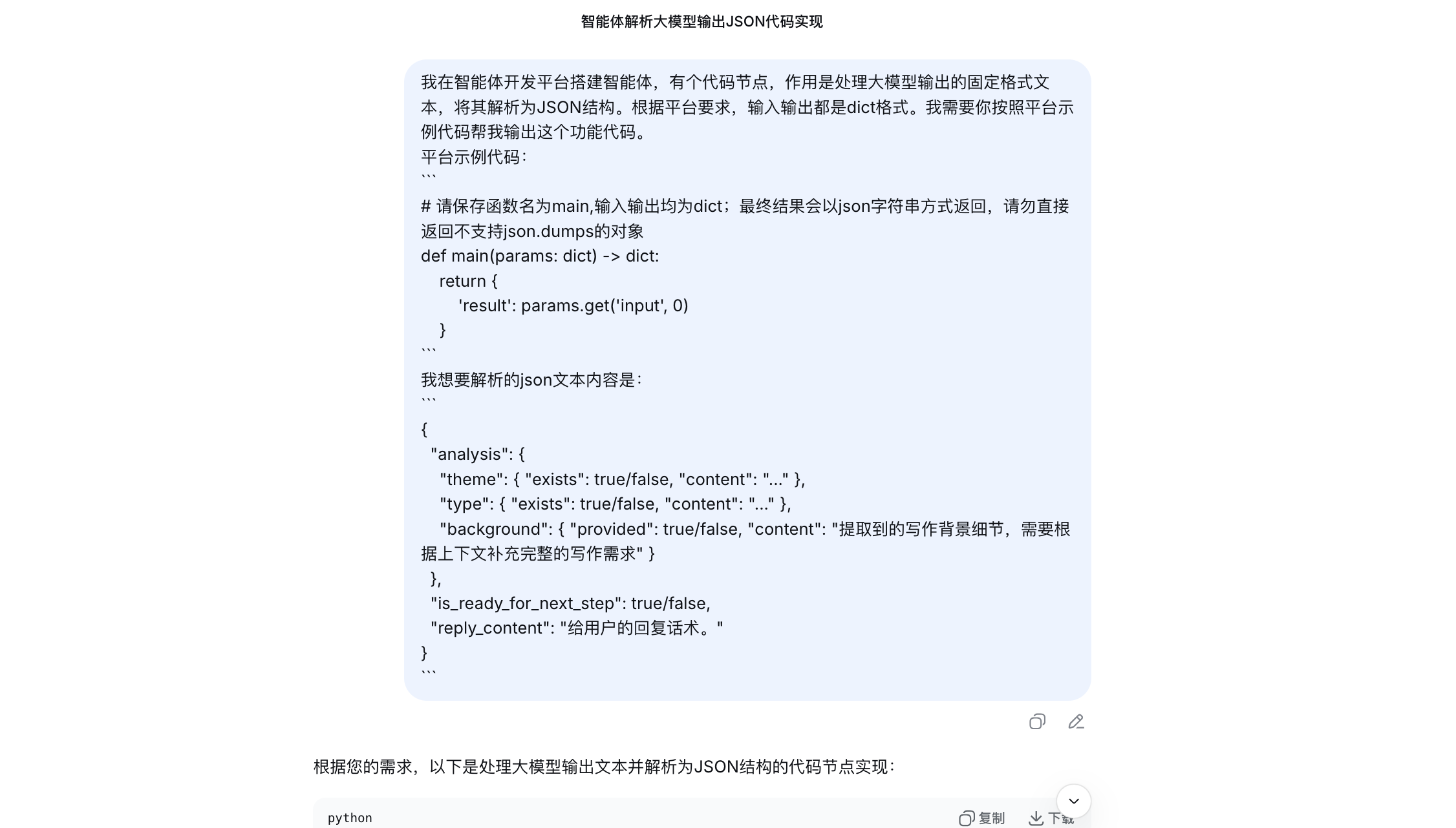 判断结论和回复用户话术等内容,以JSON格式进行输出,方便后续节点的调用。