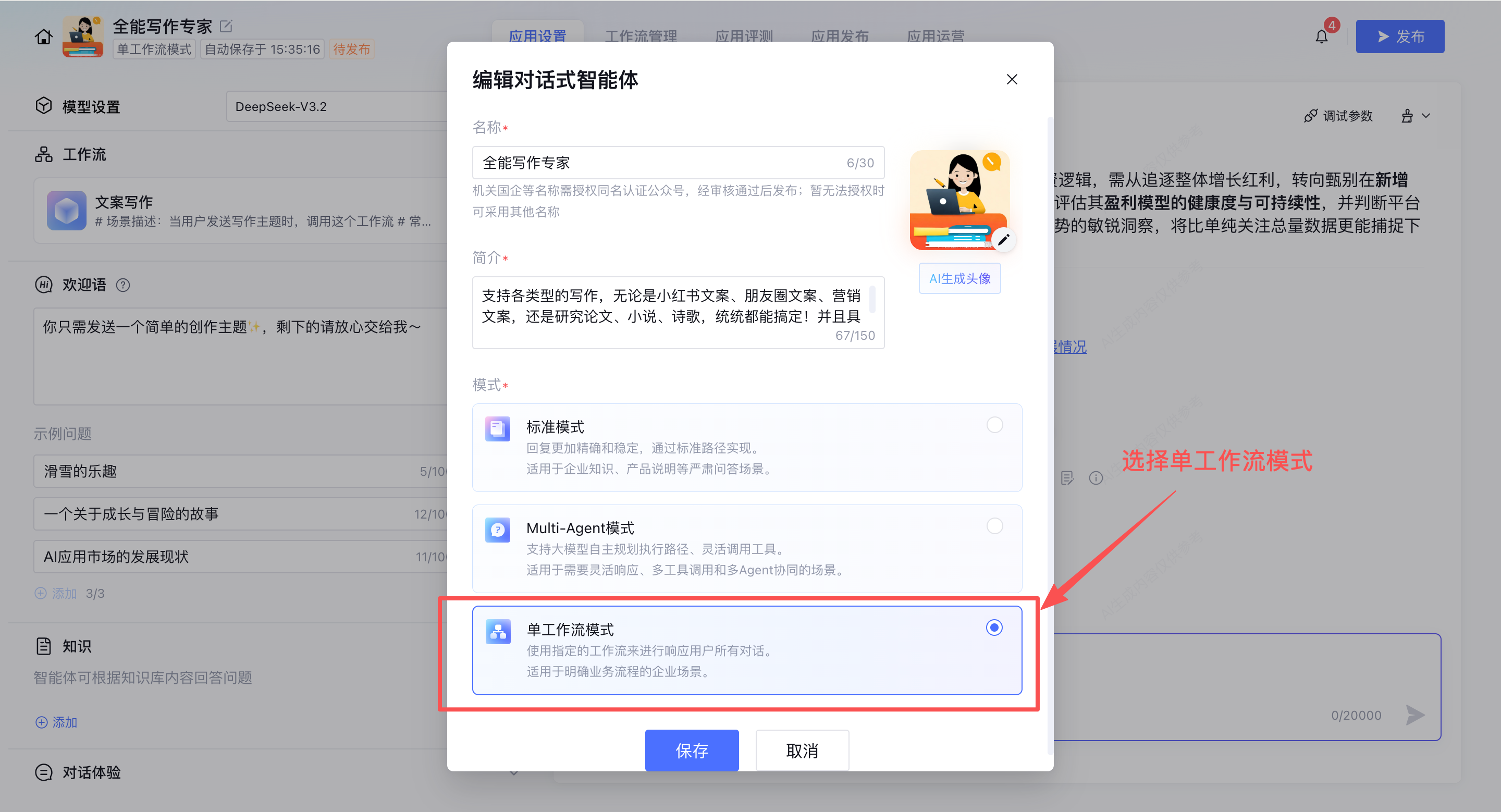 下面开始详细讲解,我这个「全能写作专家」智能体是如何搭建的: