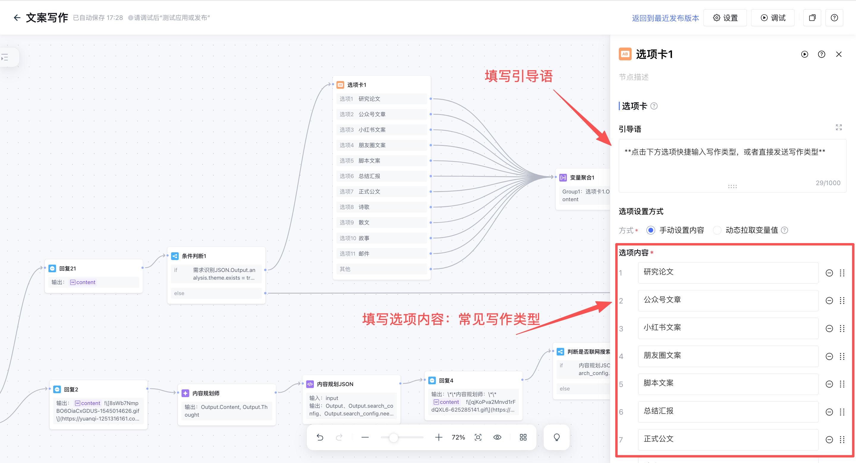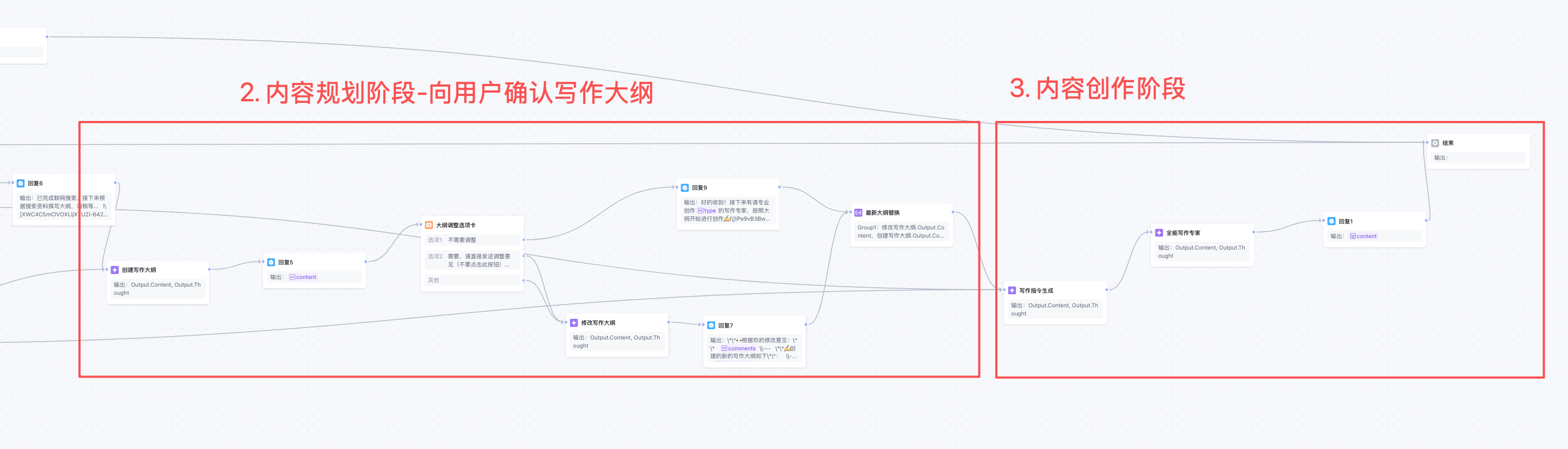 工作流后半部分:内容规划阶段的部分节点内容和内容创作阶段的节点内容