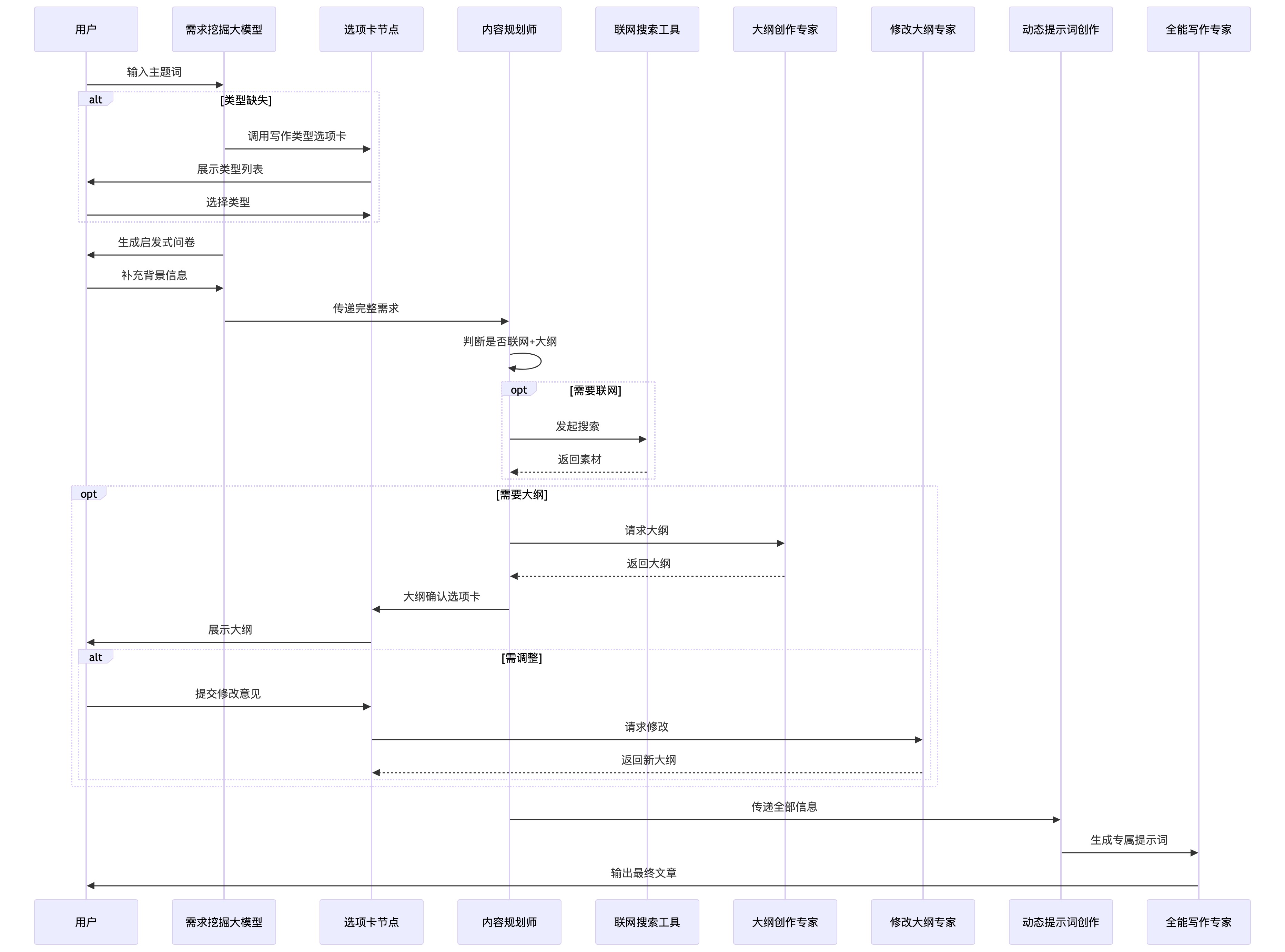 - 深度需求挖掘:不止步于表面指令,通过启发式问卷帮你挖掘写作背景、目的、受众等隐性需求。