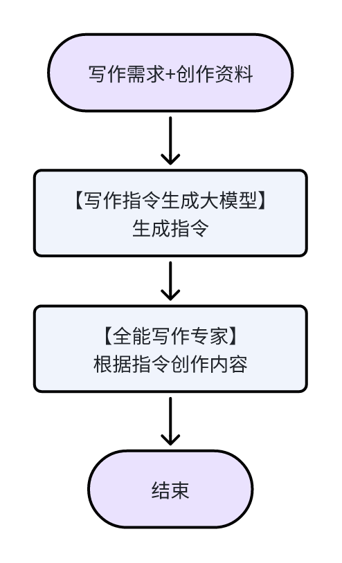 - 完成内容创作:接收用户写作需求、创作资料,由【全能写作专家大模型】依据写作指令完成创作。