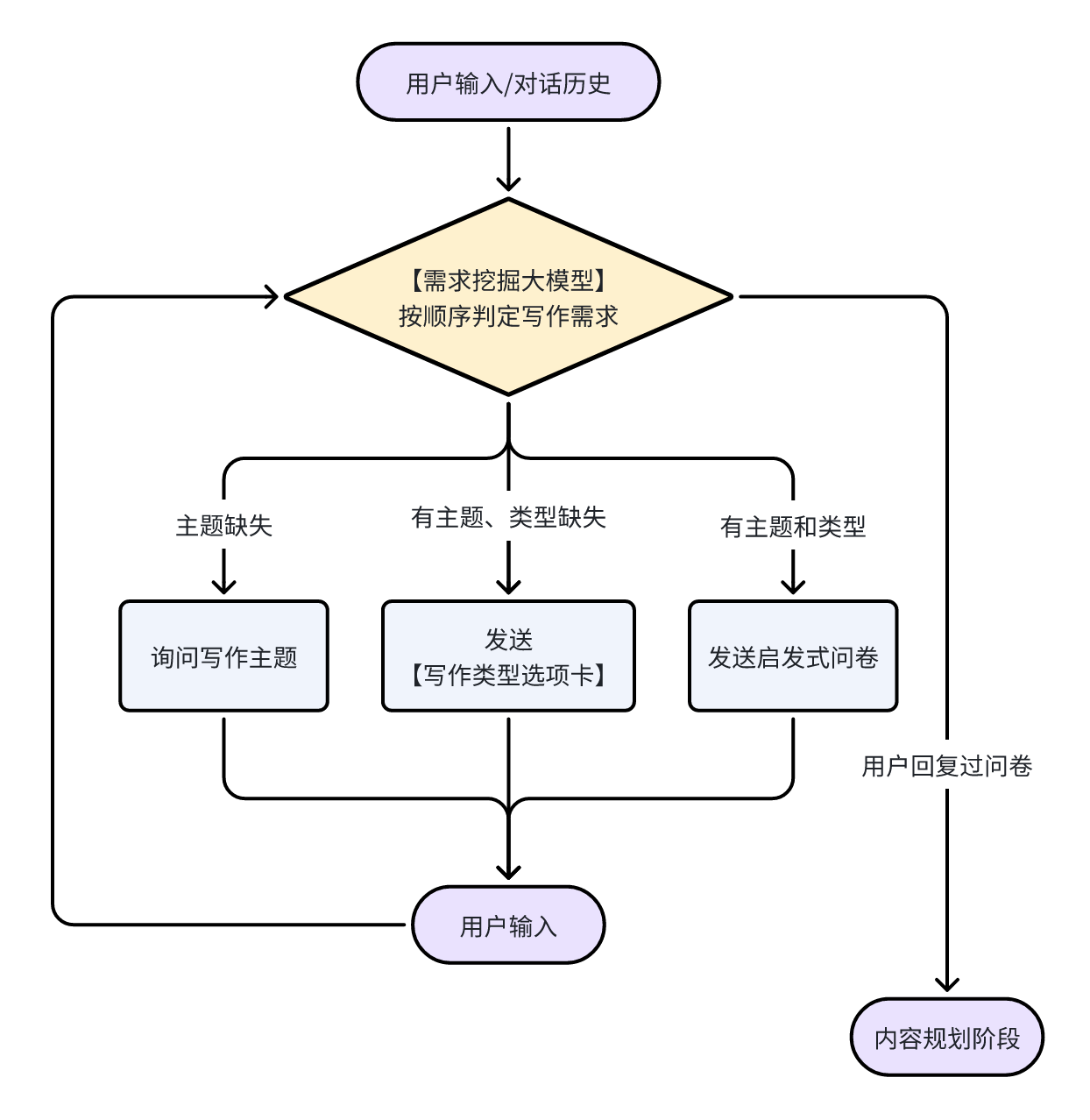 - 当用户回复问卷问题后:直接进入内容规划阶段。