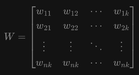 (W) 往往是一个稠密、高维、可学习的矩阵: