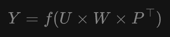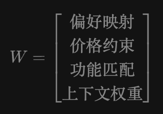 其中:(U):人群矩阵(P):商品矩阵(W):关系权重矩阵(偏好、规则、注意力)