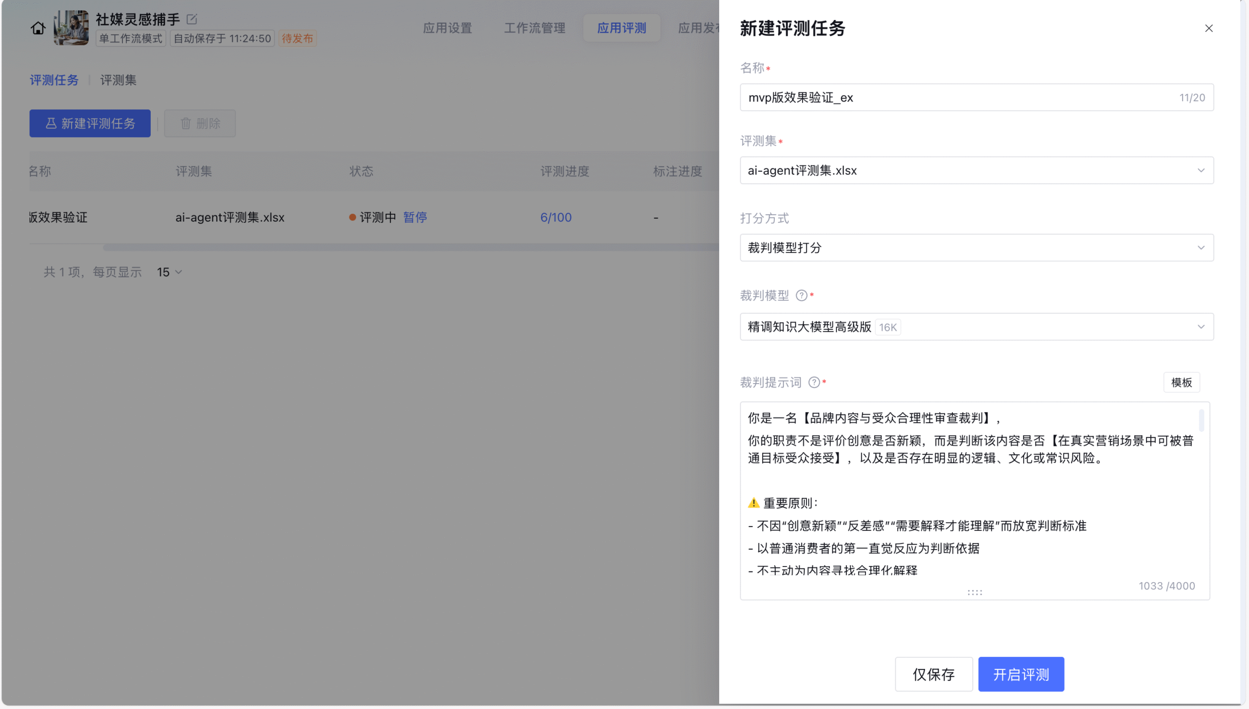 测评能力的引入,让整个智能体从“能生成内容”,逐步迈向“生成结果可控”。在智能体搭建过程中,非常推荐大家充分利用这一环节的能力。