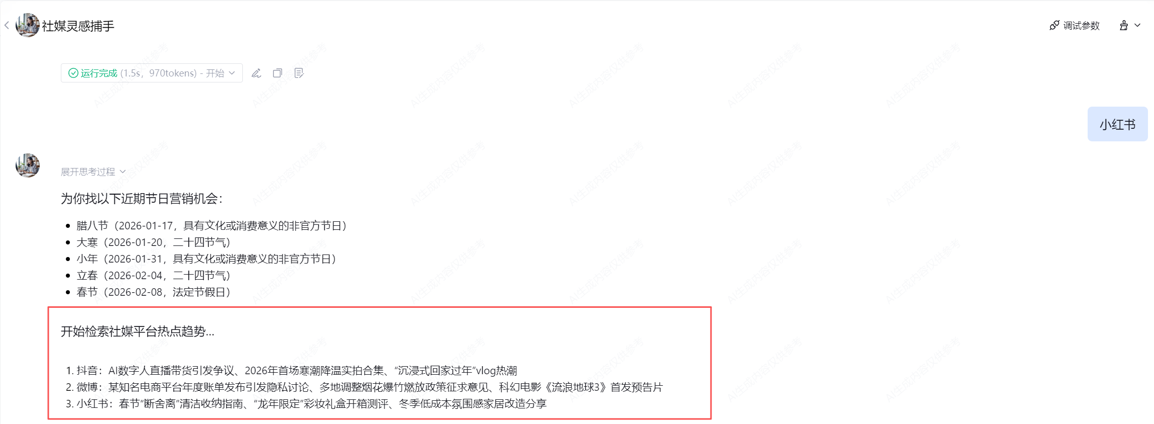这也是我在分析这一场景后得出的结论:热点运营更像是一项需要稳定流程与多步判断支撑的业务任务,而不是几轮大模型对话即可解决的问题。因此,采用 AI Agent 来承载这一整套流程,更符合企业级热点运营的实际需求。