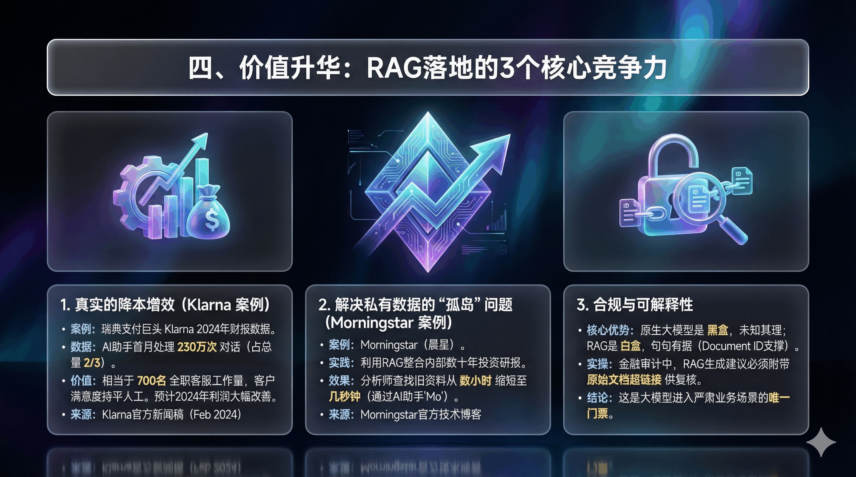 实操: 在金融审计中,RAG生成的每一条建议都必须附带原始文档的超链接,供人工复核。这是大模型进入严肃业务场景的唯一门票。