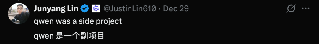 通义千问技术负责人林俊旸在𝕏上公开:Qwen was a side project。