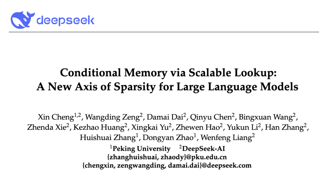 DeepSeek开源大模型记忆模块!梁文锋署名新论文,下一代稀疏模型提前剧透