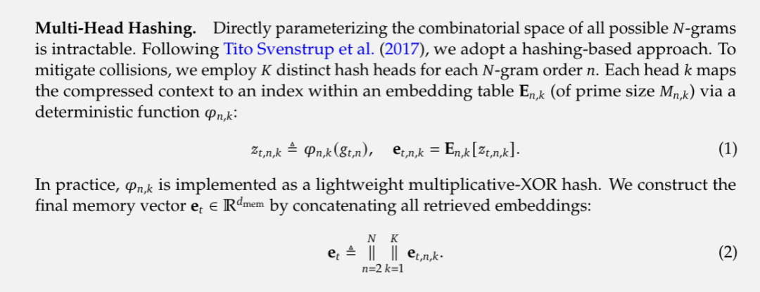 关键就在于,如此前大模型时代的玩法,DeepSeek如何解决传统N-gram模型存储爆炸和多义性问题,又是让它和现代Transformer结合起来的?