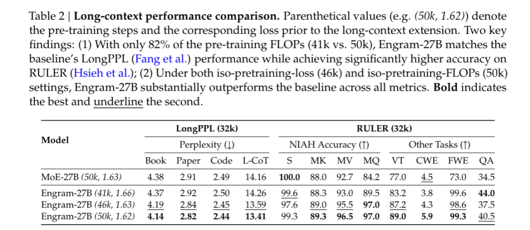 论文解释说,Engram把局部依赖建模卸载给了查找操作,释放了注意力容量去关注全局上下文。