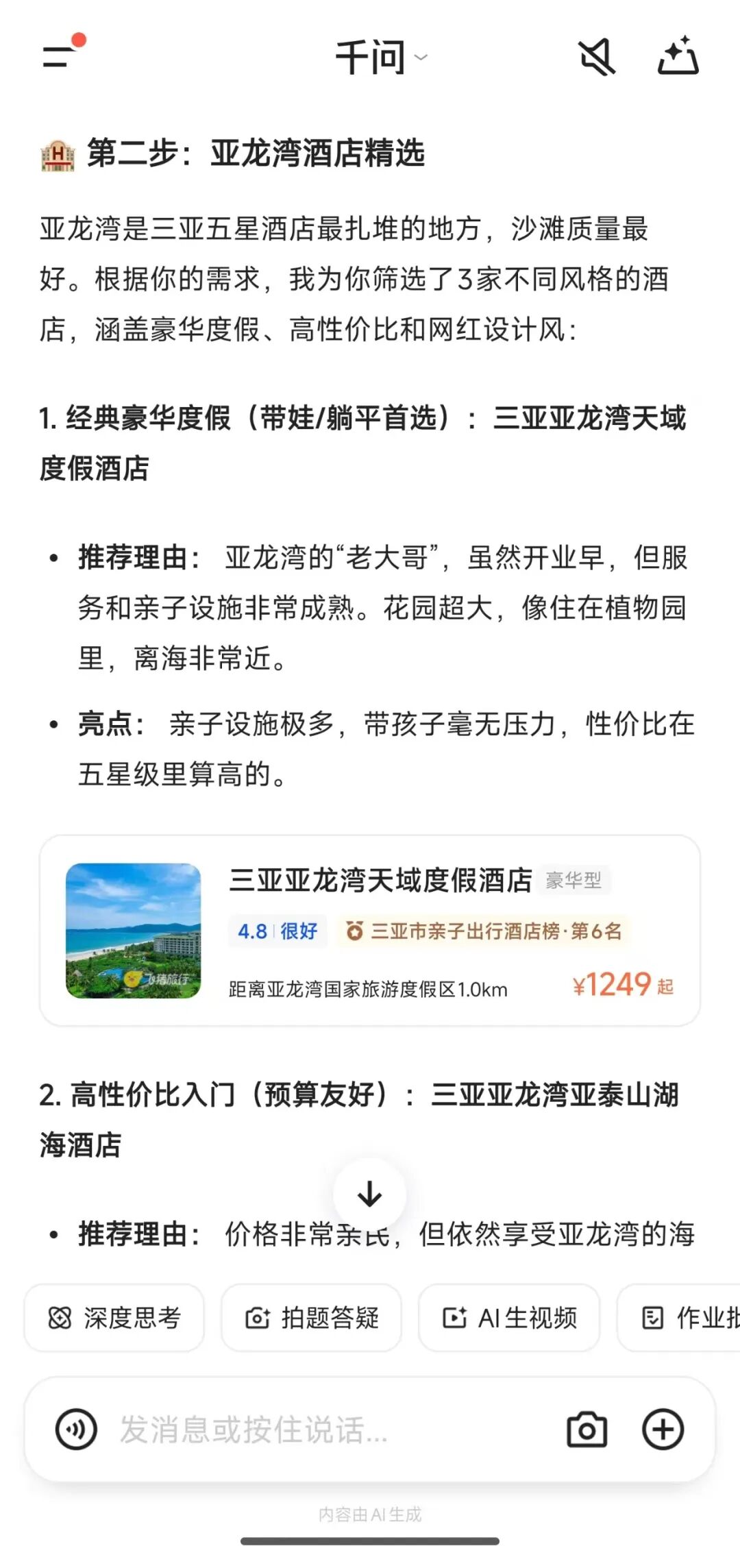 几秒钟后,屏幕上没有抛给你十个蓝色的超链接,也没有满屏的猜你喜欢广告,而是一个已经填好信息的卡片。你点击查看具体信息,千问APP内直接支付,行程锁定。