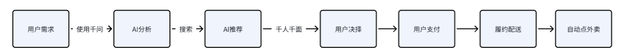 此前抖音豆包、腾讯元宝也能推荐外卖,但大多停留在给链接阶段,最终还是要跳转到对应APP操作。而阿里千问的核心突破,是实现了需求-推荐-支付-履约的全闭环,真正做到说一句,就送到。点一杯咖啡的完整流程如下: